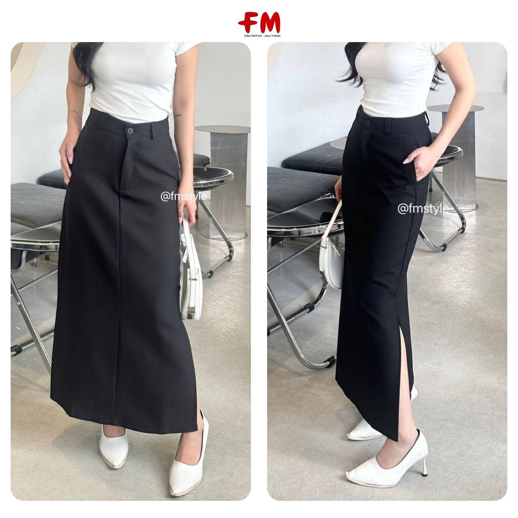 Chân váy dài nữ FMSTYLE dáng suông trơn xẻ bên vải tuytsi hàn cao cấp form chuẩn full size S,M,L 24090584