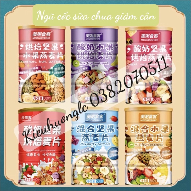 (Mua 4 tặng bát) Ngũ Cốc Sữa Chua Mix Hoa Quả Hạt Dinh Dưỡng Giảm Cân Ăn Kiêng- Lon 500g