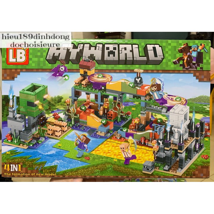 Lego minecraft 565 : Cuộc chiến trên đảo đầu lâu dành kiếm rìu kim cương 1036+ mảnh