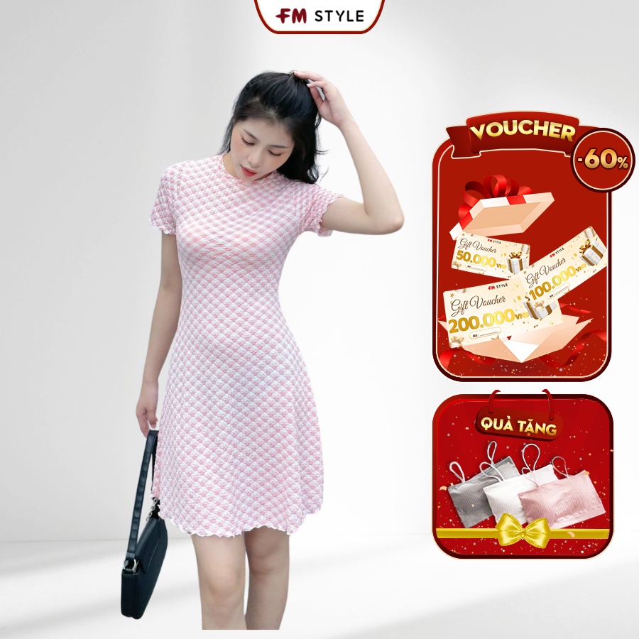 Váy body nữ FM Style tay ngắn cổ tròn phối viền dáng ngắn chất len dệt kim mềm m