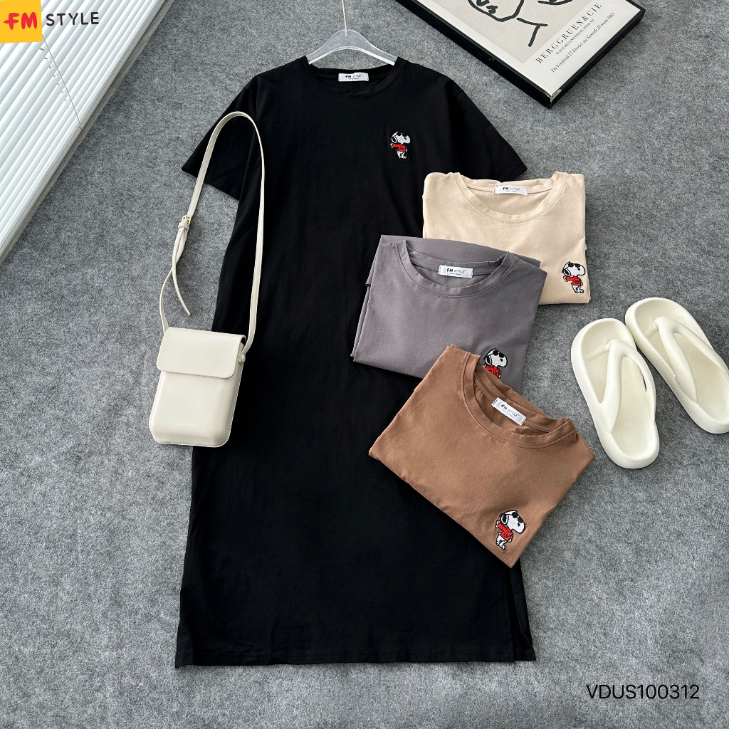 Đầm suông nữ FMSTYLE dáng dài thêu hình chó vải co giản thoáng mát form chuẩn style Hàn Quốc Freesize