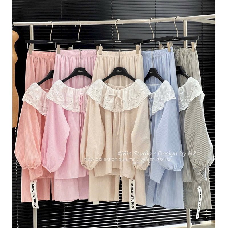 bộ đồ ngủ Tay áo dài cotton pijama đồ mặc nhà nữ Đồ ngủ nữ pijama bộ mặc nhà dài