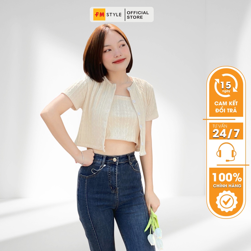 Set áo cardigan FM Style lượn sóng đính 5 nút hoa kèm áo trong thời trang dễ thư