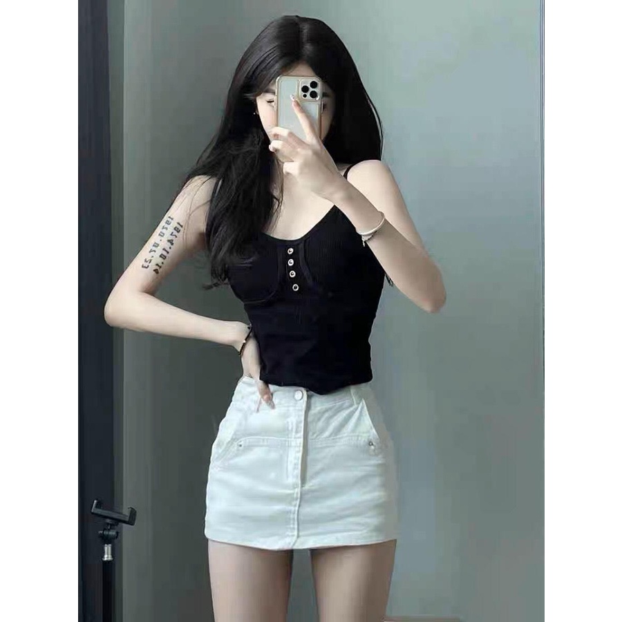 Áo Bra gân 2 dây thân dài cúp ngực phối nút chất thun tăm mềm mịn mặc thoải mái thời trang Ulzzang 209100080