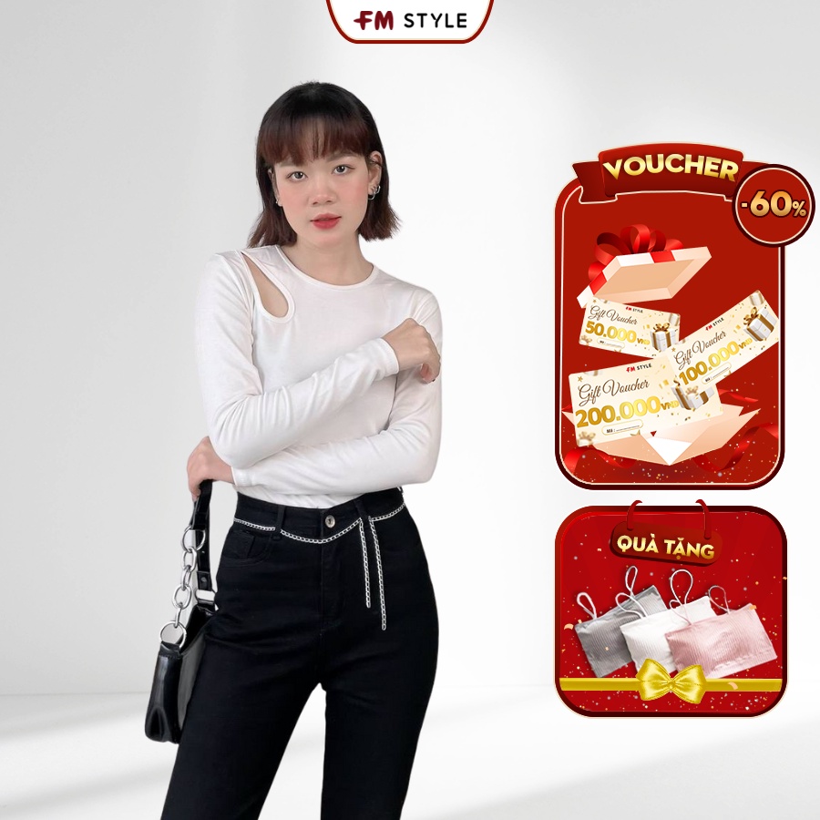 Áo thun nữ FM Style tay dài cổ tròn khoét 1 bên vai chất thun tăm dày dặn co giã