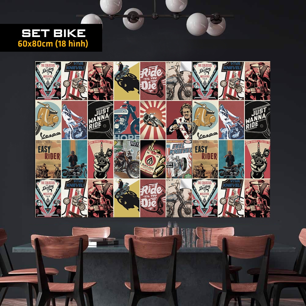 Tranh decal decor poster hình dán tường vintage trang trí phòng ngủ áp phích dán tường quầy bar POP.ART BIKE -1001