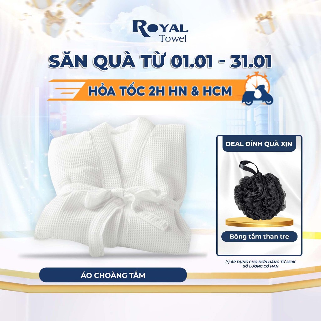 Áo choàng tắm khách sạn ROYAL TOWEL 100% cotton thấm hút mềm mại siêu bền vải dệt tổ ong waffle cao cấp