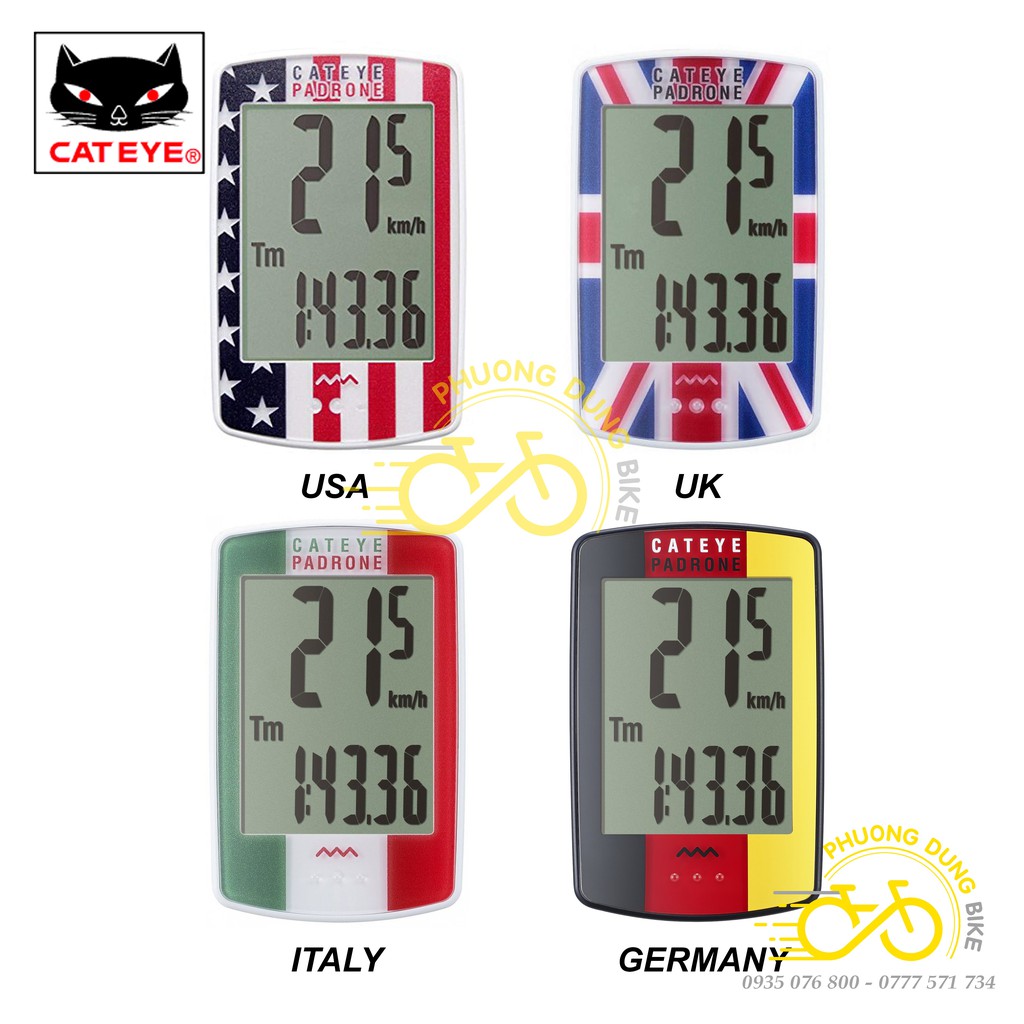 Đồng hồ KM xe đạp không dây CATEYE PADRONE CC-PA110W (Cờ các nước Germany, Italy, USA, UK)