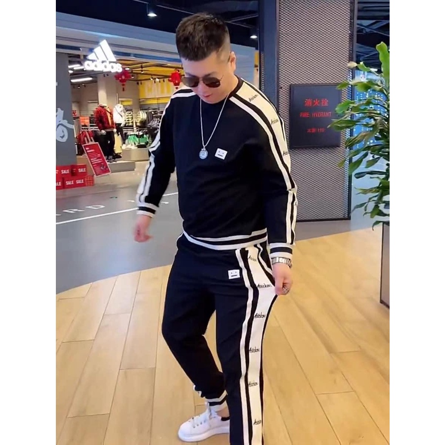 Bộ quần áo nỉ nam thu đông,bộ thể thao dài tay phối sọc trắng của nam THÔNG TIN