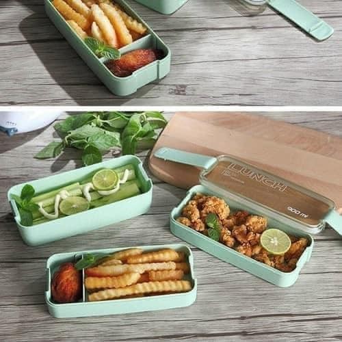♻️ Thiết kế gọn nhẹ với 1 ngăn lớn và 2 ngăn nhỏ, tặngkèm 1 đôi đũa,1 thìa bằng Inox. Nắp đậy khít, chống tràn với 2 khóa bên hông.