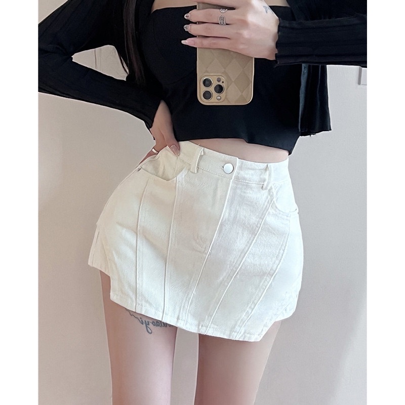 Áo sơ mi croptop jean FMSTYLE chất jean mềm dáng ngắn thiết kế phối 2 túi nắp hộp tay ngắn basic siêu xinh 23043053