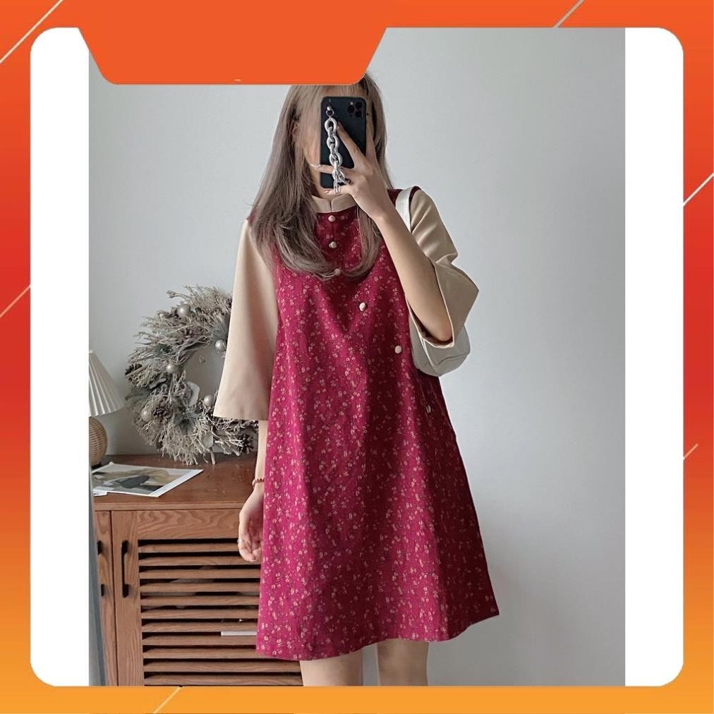 Váy bầu công sở thời trang Aidenshop đầm bầu suông thô lụa mát cộc tay cổ đức mà