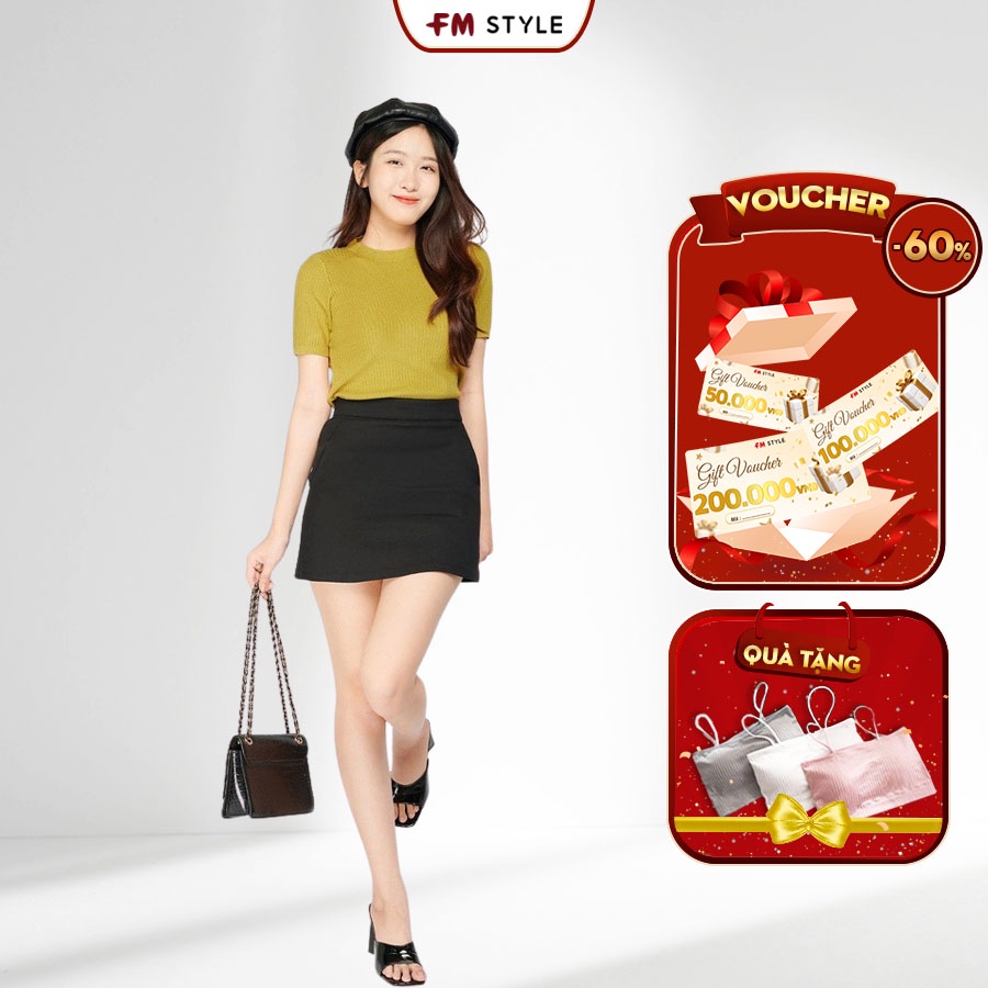 Áo kiểu nữ polo FM Style dáng lửng chất len dệt kim hoạ tiết sọc tay ngắn 208260079