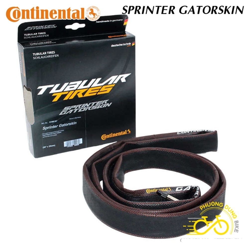 - Lốp xe đạp Tubular CONTINENTAL SPRINTER GATORSKIN Có hộp là dòng lốp xe đạp cao cấp đến từ thương hiệu Continental (Xuất xứ Germany - Đức). Phù hợp cho các dòng xe đạp thể thao đường trường, xe đạp đua sử dụng bánh xe 700c.