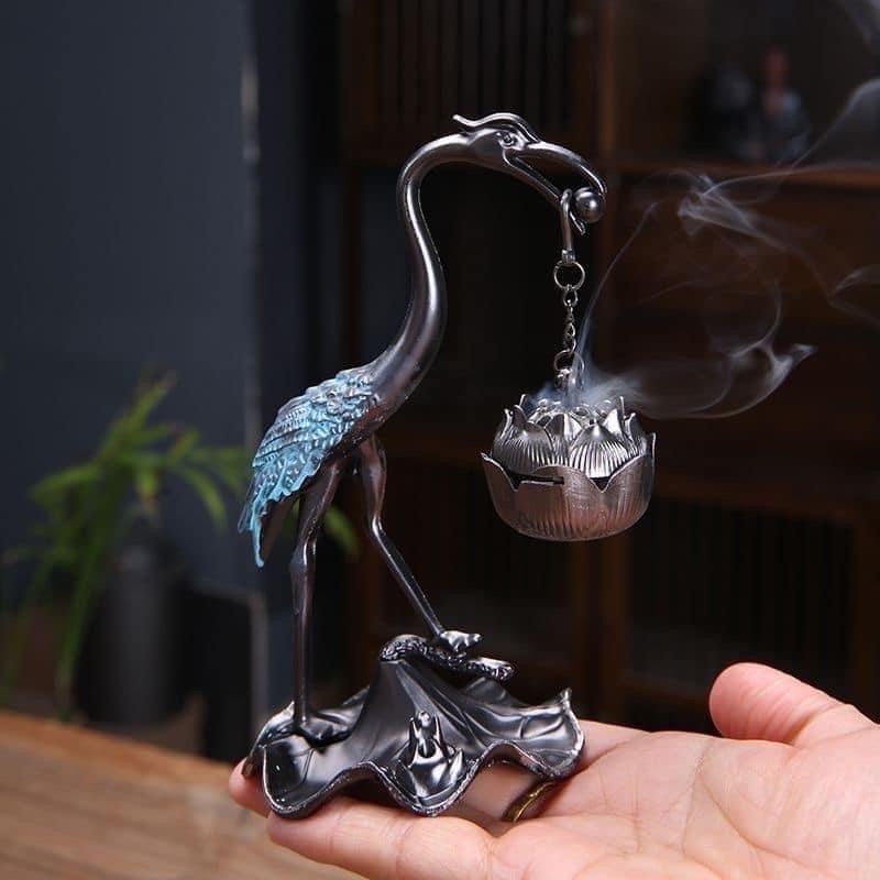 Lư đỉnh đốt hương trầm hình hồng hạc, Lư đỉnh hồng hạc decor trang trí cực sang