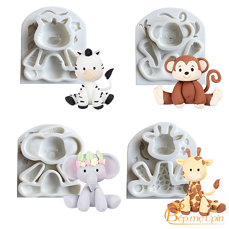 Khuôn silicone hình động vật ngộ nghĩnh con hưu con khỉ con voi con sư tử khuôn