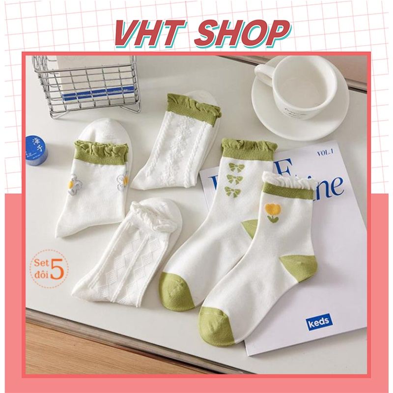 Tất cổ cao, set 5 tất vớ cổ cao nam nữ vải cotton co giãn thoáng khí thời trang TC162D - VHT SHOP