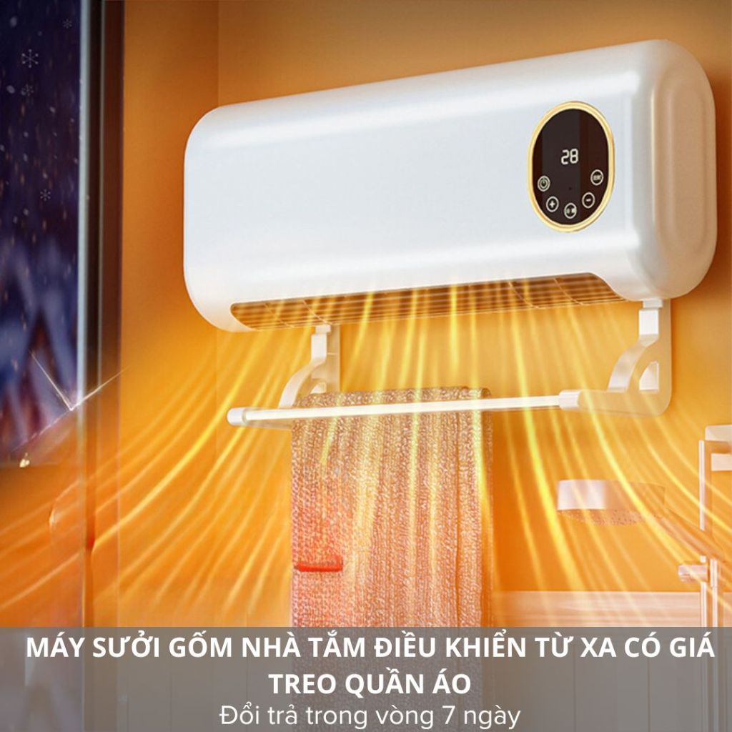 Máy Sưởi Gốm Công Suất 2000W Treo Tường Nhà Tắm Có Điều Khiển Từ Xa Thông Minh V