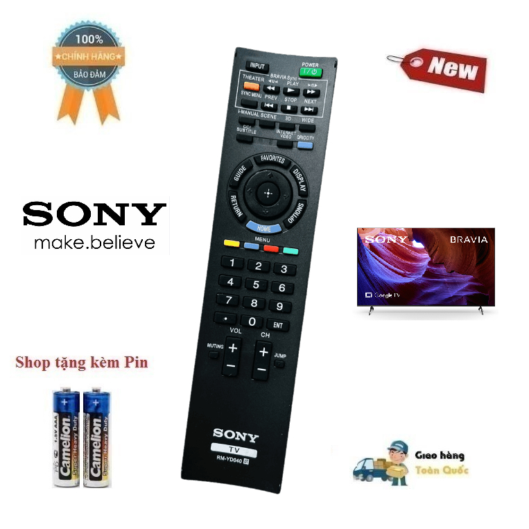 Sản phẩm Điều khiển Tivi Sony RM-YD040 LCD/LED SMART TV OLED- Hàng chính hãng THEO MÁY 100% Tặng kèm Pin là hàng mới nguyên tem, chất lượng cao được cửa hàng chúng tôi cam kết: