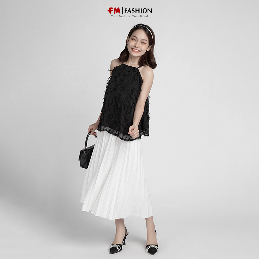 Sét đồ nữ FM STYLE áo kiểu croptop phối túi trước đính nút thời trang thiết kế phong cách dự tiệc 23010697