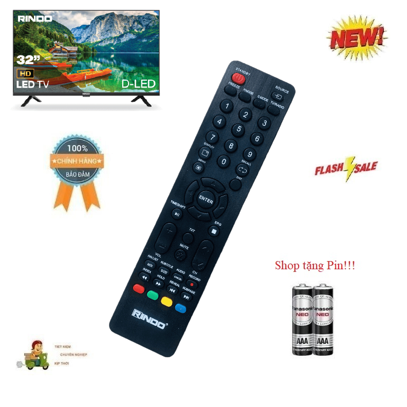 Remote Điều khiển RINDO TV LCD/LED/SmartTV Hàng chính hãng theo TV 100% Tặng kèm Pin