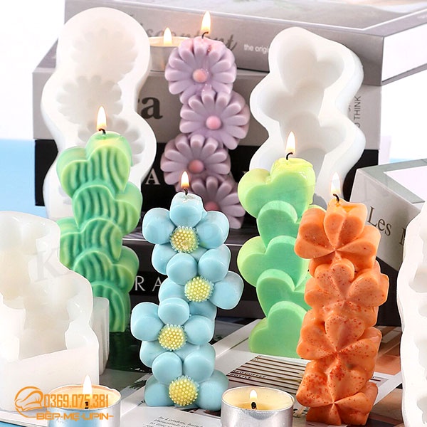 Khuôn nến silicon hình hoa lá 3D xếp chồng lên Nhau