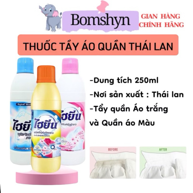 (ĐỌC KĨ HDSD) Tẩy trắng quần áo màu, quần áo trắng Thái Lan 250ml Hygiene không