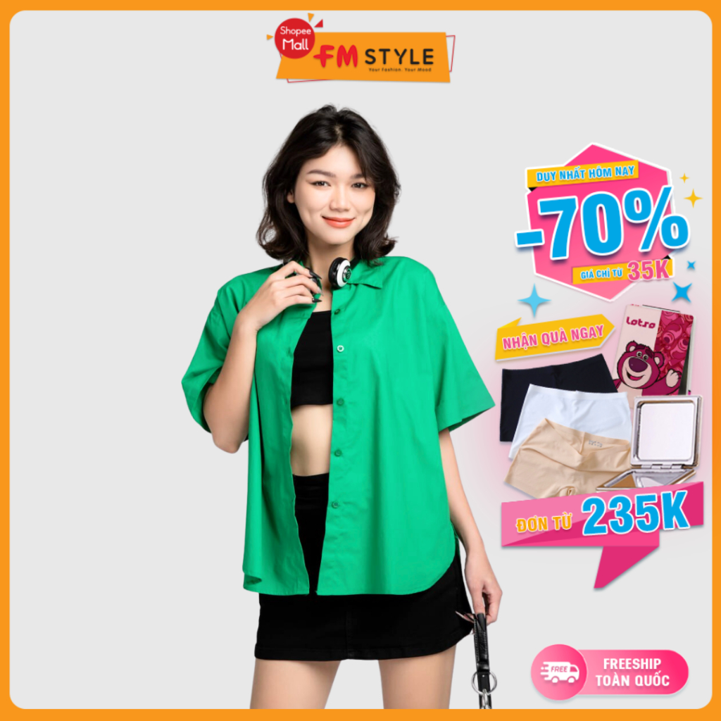 Áo sơ mi nữ form rộng FM STYLE ngắn tay xẻ tà sau phối nút nhiều màu sắc phong cách ulzzang vintage hàn quốc 23020498
