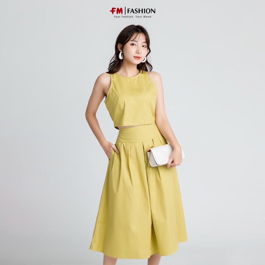 Chân váy dài FM STYLE lưng cao phối túi giả bên dáng rộng xoè thời trang thiết kế sang trọng 23010536
