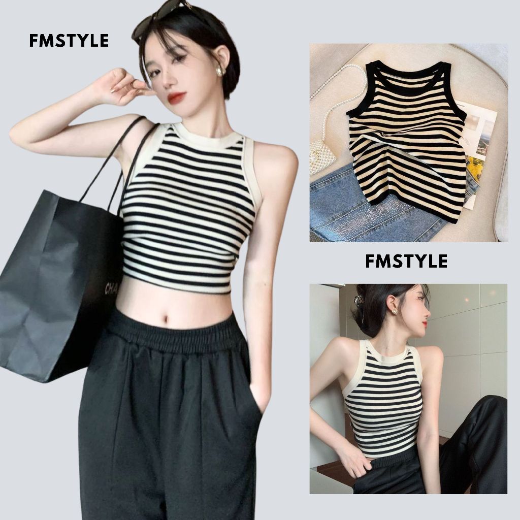 Áo dệt kim sát nách FMSTYLE nữ sọc ngang trẻ trung mix match đa dạng phong cách Freesize